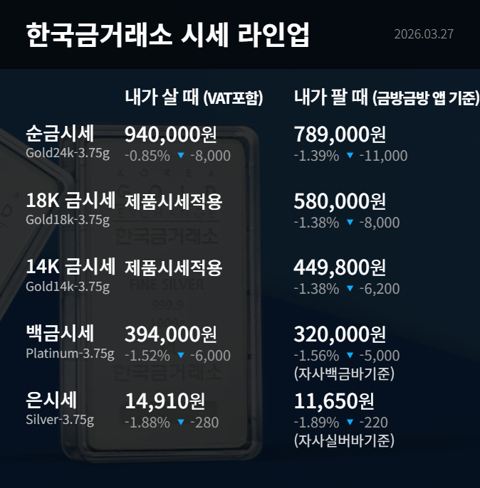 목록 페이지 정보 작성자 최고관리자 작성일26-03-27 11:27 3월 27일 금시세 입니다 본문 성투하세요! 이전글3월 28일 금시세 입니다 26.03.28 다음글3월 26일 금시세 입니다 26.03.26