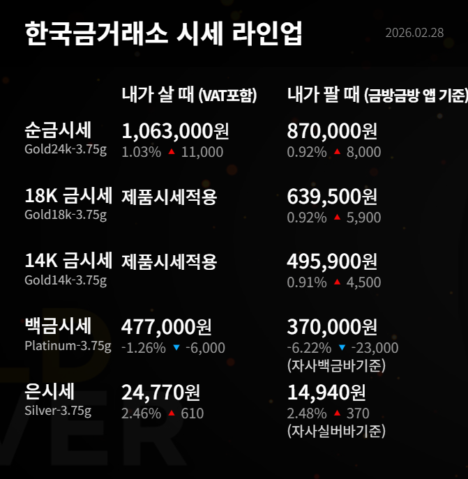 목록 페이지 정보 작성자 최고관리자 작성일26-02-28 12:19 2월 28일 금시세 입니다 본문 성투하세요! 이전글3월 2일 금시세 입니다 26.03.02 다음글2월 27일 금시세 입니다 26.02.27