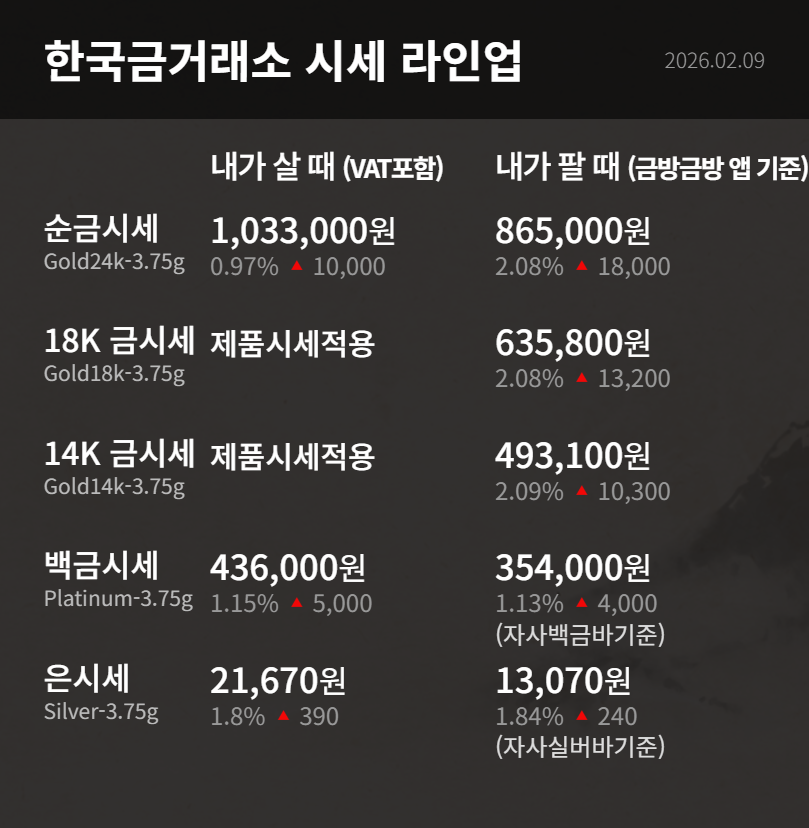 2월 9일 금시세 입니다