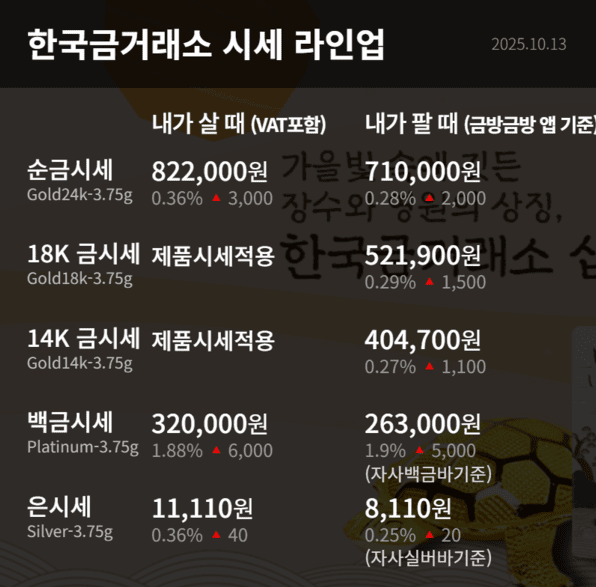 10월 13일 금시세입니다