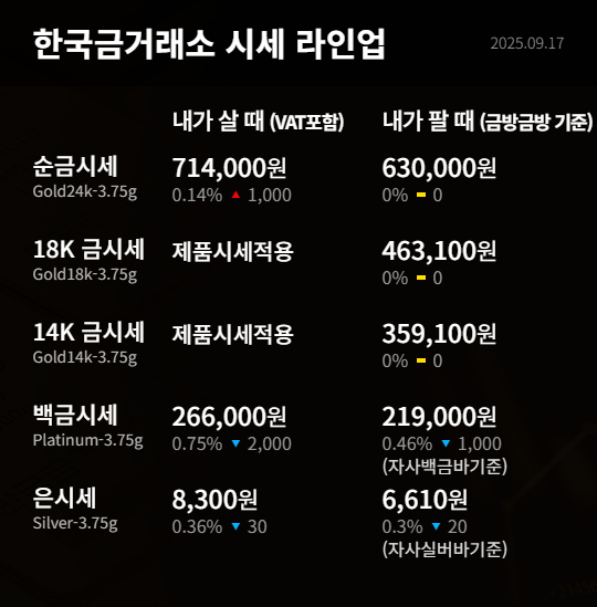 9월 17일 오늘의 금시세 입니다.