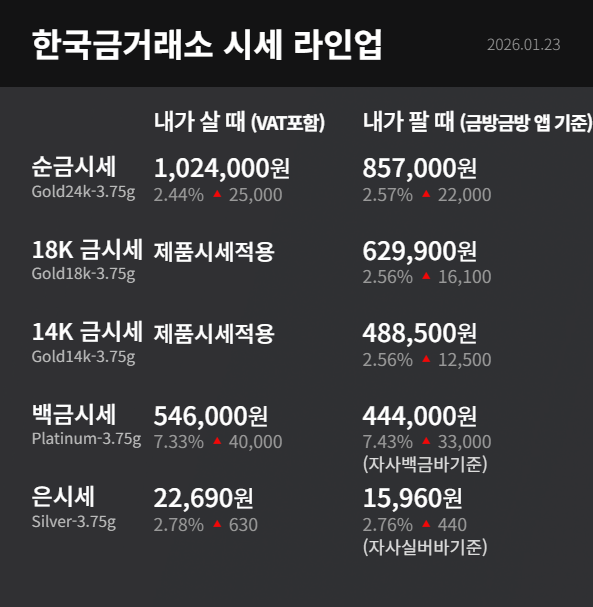 목록 페이지 정보 작성자 최고관리자 작성일26-01-23 11:42 1월 23일 금시세 입니다 본문 성투하세요! 이전글1월 24일 금시세 입니다 26.01.24 다음글1월 22일 금시세 입니다 26.01.22