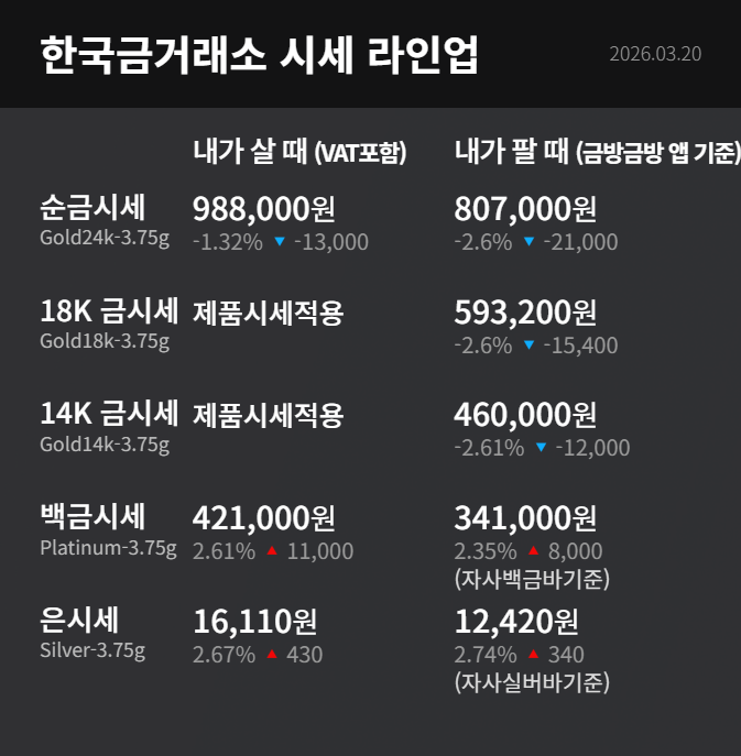3월 20일 금시세 입니다